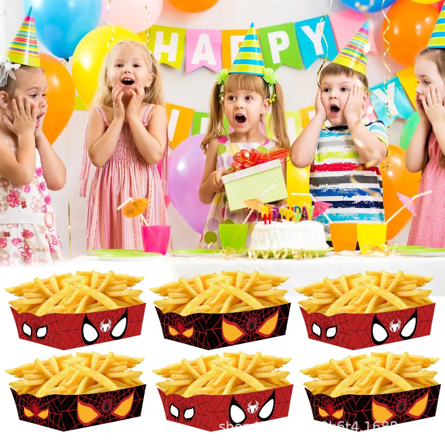 Serve snacks in superhero style with these Spider-Man paper food trays — perfect for popcorn, candy, and treats at kids’ birthday parties or Marvel-themed celebrations!