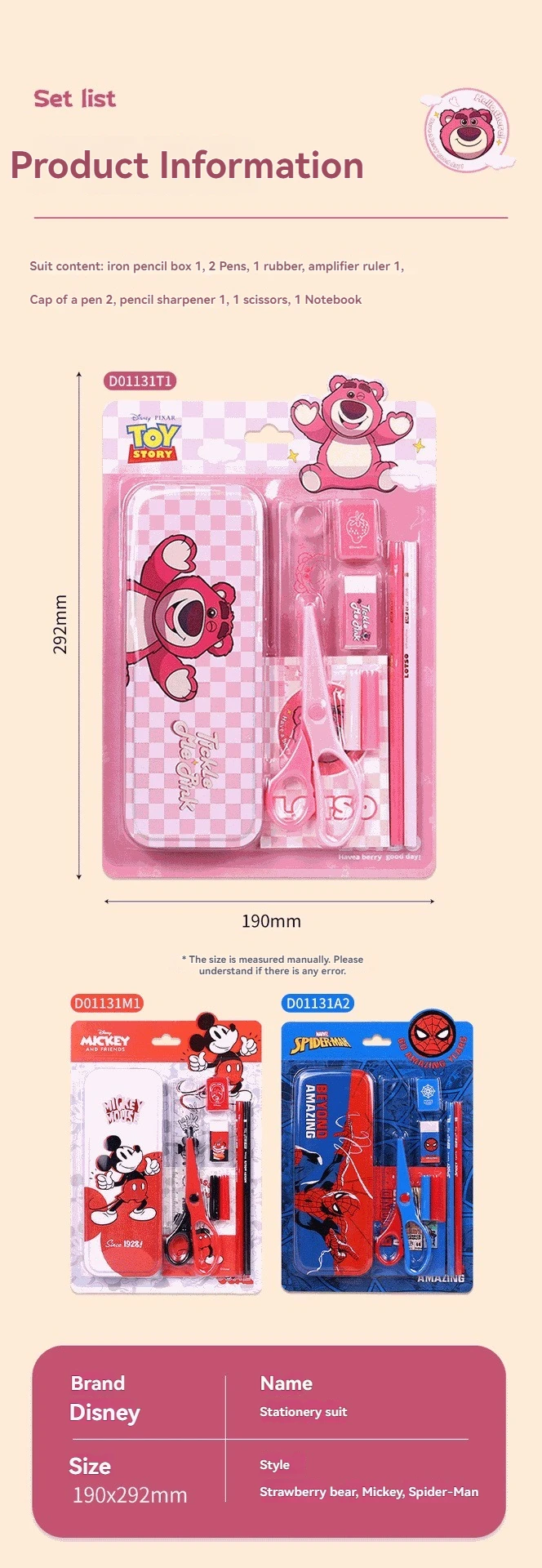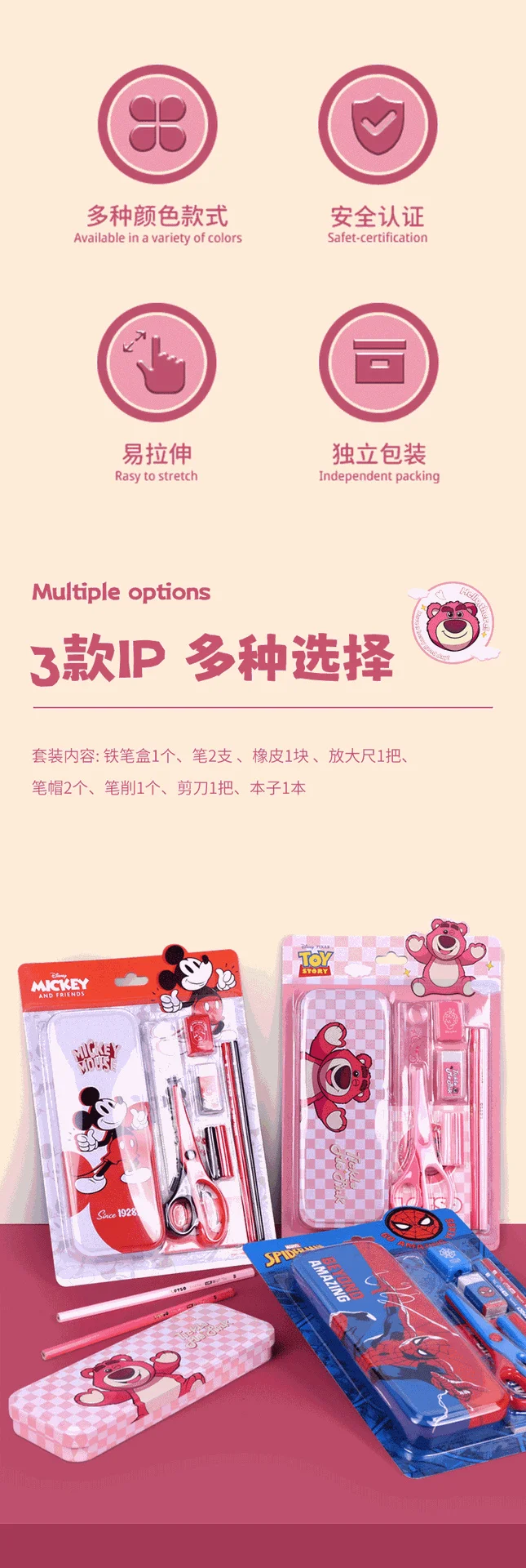 Make learning magical with these adorable Disney Stationery Sets featuring favorite characters like Elsa, Spider-Man, Mickey, and Strawberry Bear — a perfect gift for girls and children during holidays or back-to-school season.