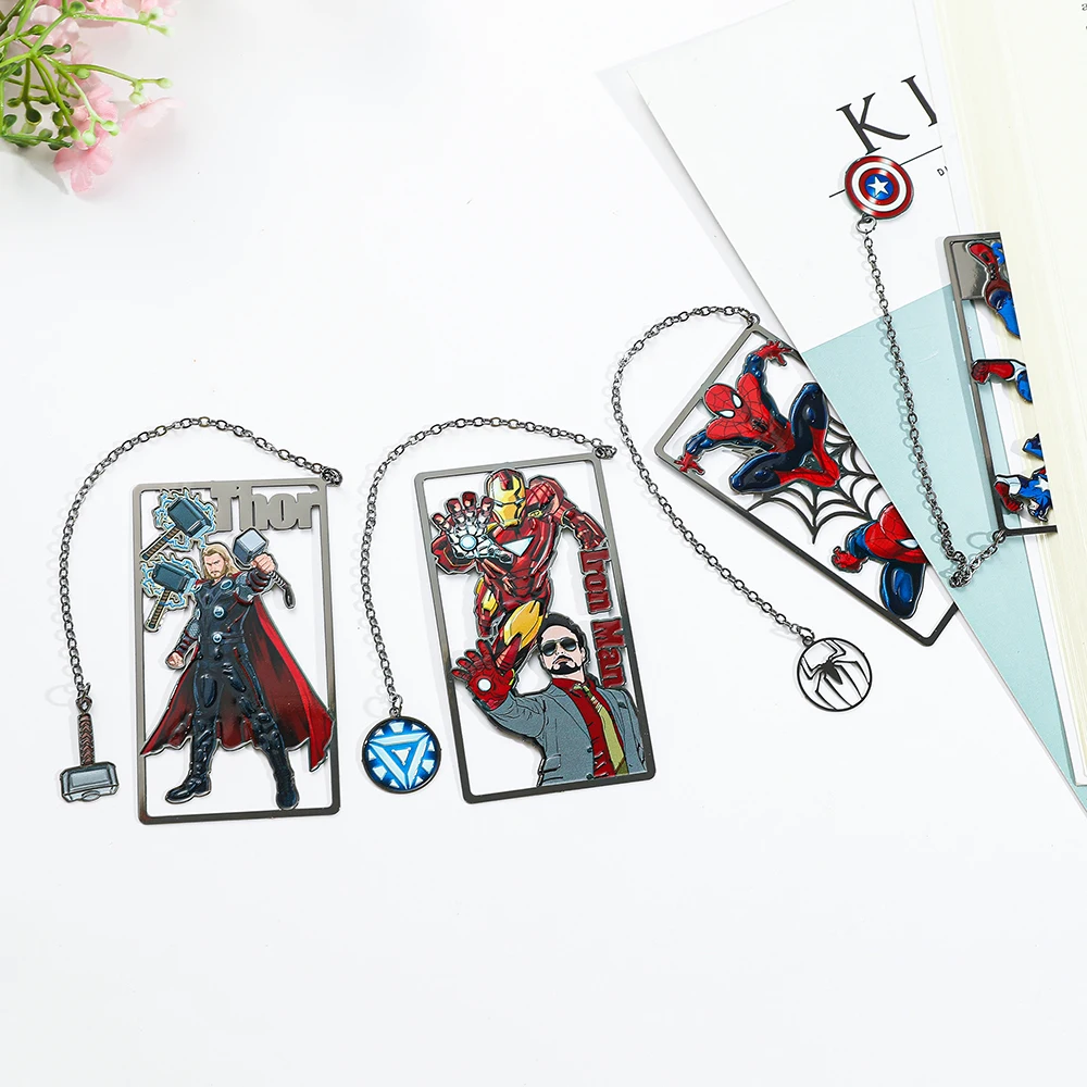 Mark your pages with Marvel power using this premium copper bookmark set featuring Spider-Man, Thor, Captain America, and Iron Man — a perfect collectible for fans and a stylish gift for readers.
