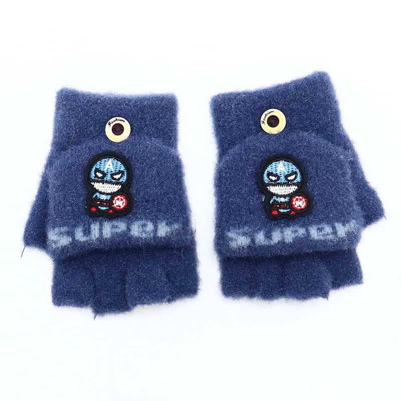 MINISO Spider-Man Half-Finger Gloves – Thickened Five-Finger Flap Gloves for Elementary School Students